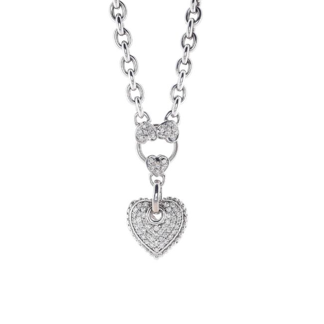 75 round brilliant cut pave diamonds on 1 heart pendant and 5 smaller hearts