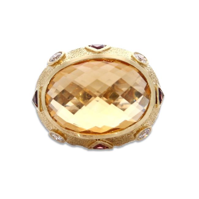 Faceted citrine in center (18mm x 12mm)