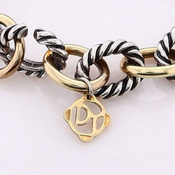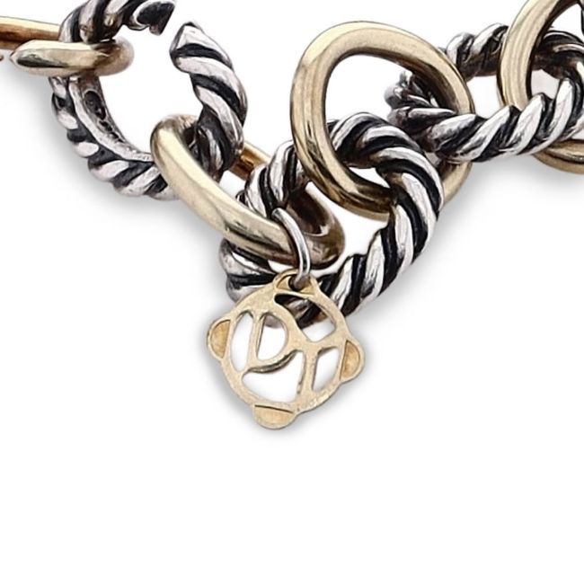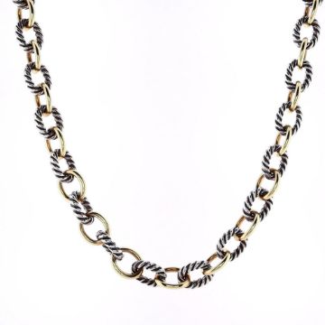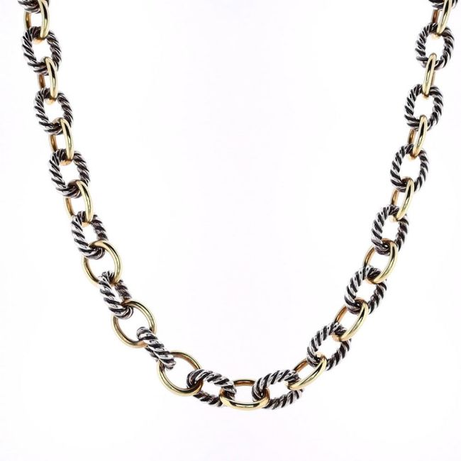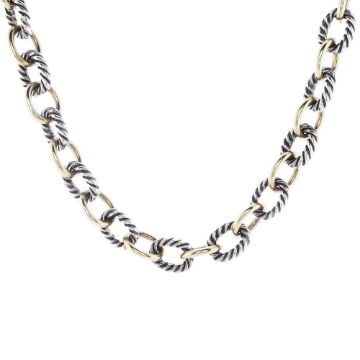 David Yurman link chain necklace with alternating sterling silver cable and 18k yellow gold links