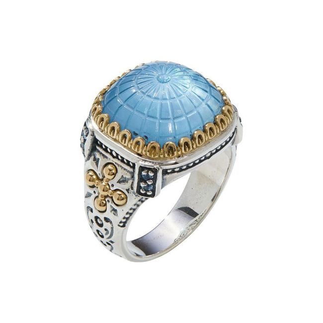 Dome blue spinel & mother of pearl measures: 13.1mm