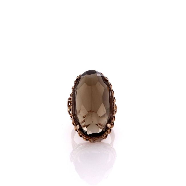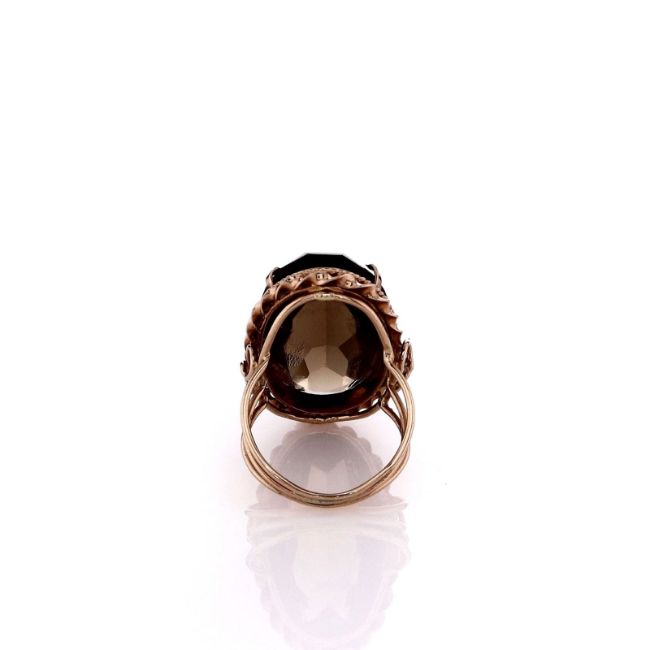 Metal Type: 14k Yellow GoldSetting Type: Prong-SetFinish: High PolishWidth: 25.5mm x 15mm Center Stone, 9.0mm Shank Tapering To 2.5mmStones: 1 Checkerboard Faceted Cabochon Smokey QuartzRing Size: 5Smyth SKU: 4230587-2