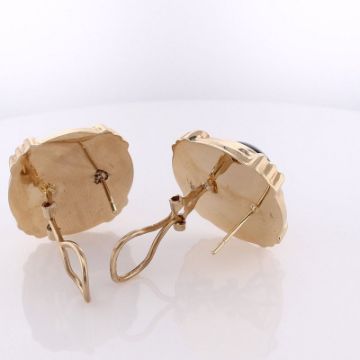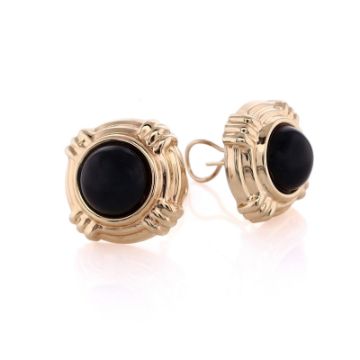 Metal Type: 14k Yellow GoldSetting Type: Bezel-SetFinish: High PolishWidth: 12mm Gold Ribbed FrameMounting Type: Omega BackingStones: (1)2 Cabochon Black OnyxSmyth SKU: 4232102-5