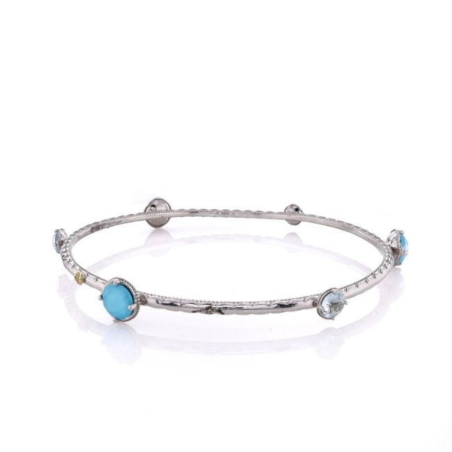 From The Tacori Island Rains CollectionMetal Type: Sterling Silver With 18k Yellow Gold AccentSetting Type: Prong-SetFinish: High PolishStones: 6 Neo-Lite AquamarinesSize - LargeSmyth SKU: SB1320502-L