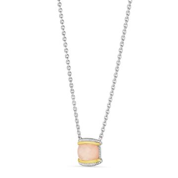 Eternity Necklaces inspired by the everlasting love in our life, with interwoven sculptural designs of texture and high polish, all which come together to form the eternal symbol that is the centerpiece of this collection.Metal Type: 18k Yellow Gold and Sterling Silver With Rhodium Finish To Brighten and ProtectSetting Type: Bezel-SetFinish: High Polish and TexturedNecklace Length: 18"Width: 12.7mmRose/QuartzSKU: JNS80037-RQPM-18 (Rose Quartz/Mother of Pearl)