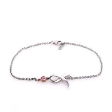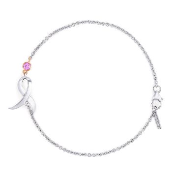This bracelet is crafted from sterling silver. It features a sparkling pink sapphire bezel set in 18 karat rose gold with the signature Shining Strength ribbon. It is 7 in length.Metal Type: Sterling Silver and 18k Rose GoldSetting Type: Bezel-SetFinish: High PolishBracelet Length: 7Stone: 1 Round Pink sapphireHandcrafted by TacoriManufacturer Style Number: SB238P51