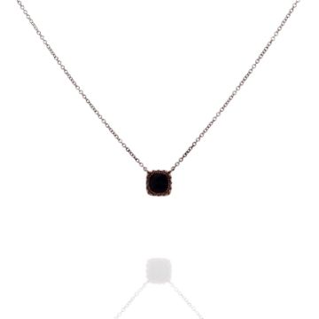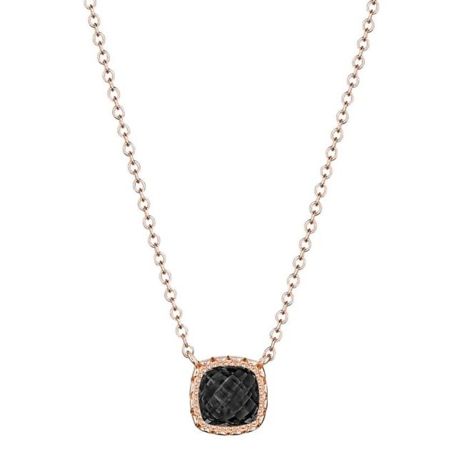 From Tacori's Crescent Embrace collection.Metal Type: 14k Rose GoldFinish: High PolishCentered on a 17 rose gold chainStone: 1 Faceted Cushion Cut Black 5mm OnyxHandcrafted in California?SKU: SN24619FP