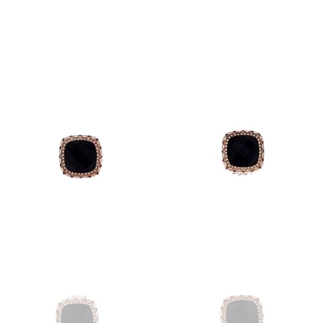 Beautiful Tacori Black Onyx earrings set in 14kt rose. The 5mm cushion shaped Black Onyx are finished with a checkerboard cut that brilliantly catches the light. Metal: 14k Rose GoldSetting Type: Bezel-SetFinish: High PolishMounting Type: Friction PostStones: (1)2 Faceted Cushion Cut Black OnyxGemstone Size: 5mmHandcrafted in California.SKU: SE25619FP (Rose Gold)