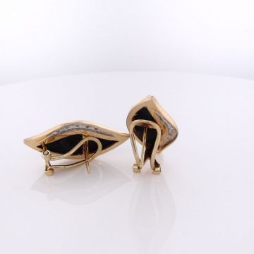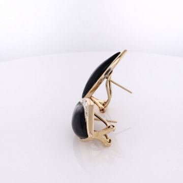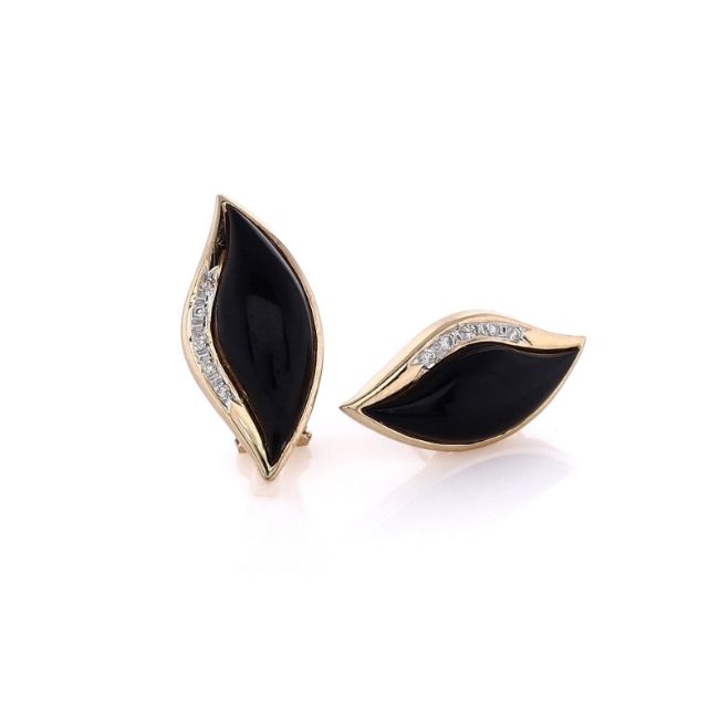 Metal Type: 14k Yellow GoldSetting Type: Bezel-Set Onyx, Pave DiamondsFinish: High PolishStones: (1)2 Freeform Cabochon Marquise Black OnyxDiamonds: (5)10 Round Brilliant Cut Diamonds, 0.10ct Total WeightDiamond Quality: I Color, I1 ClaritySmyth SKU: BT-SM2000282-58