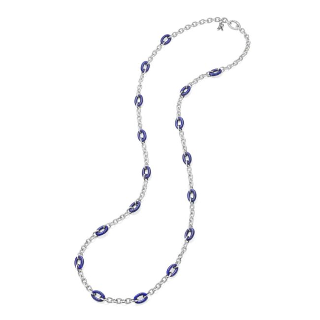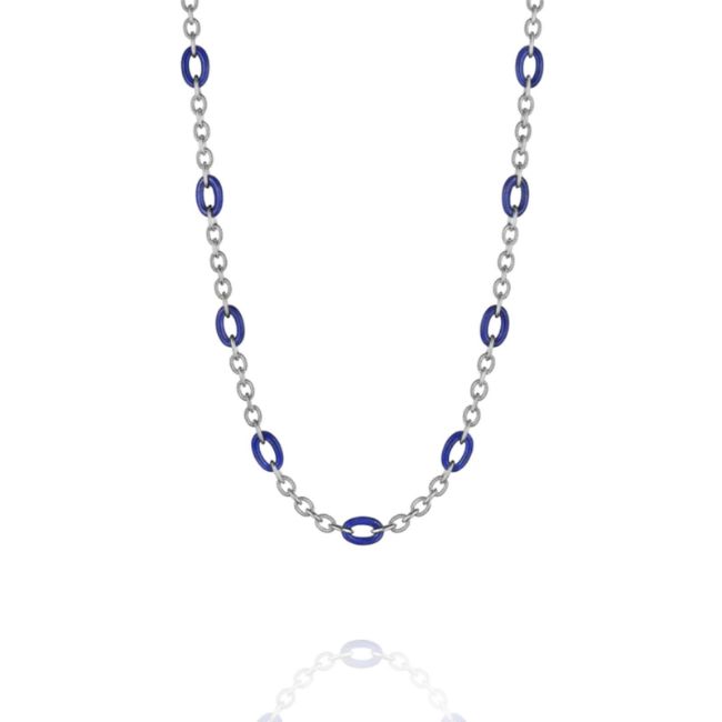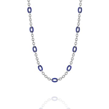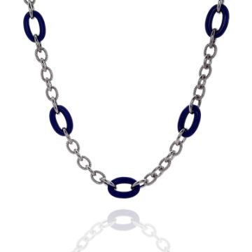 Eternity Necklace inspired by the everlasting love in our life, with interwoven sculptural designs of texture and high polish, all which come together to form the eternal symbol that is the centerpiece of this collection.Metal Type: Sterling Silver With Rhodium Finish To Brighten and ProtectFinish: High PolishWidth: 9.5mmClosure: Push ClaspNecklace Length: 36Stones: 17 Blue Lapis Chain LinksStyle#:?JNSS0449-LP-36